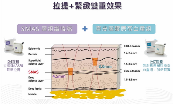 ◎ D4探頭:立即SMAS層緊縮拉提,V臉輪廓重現。